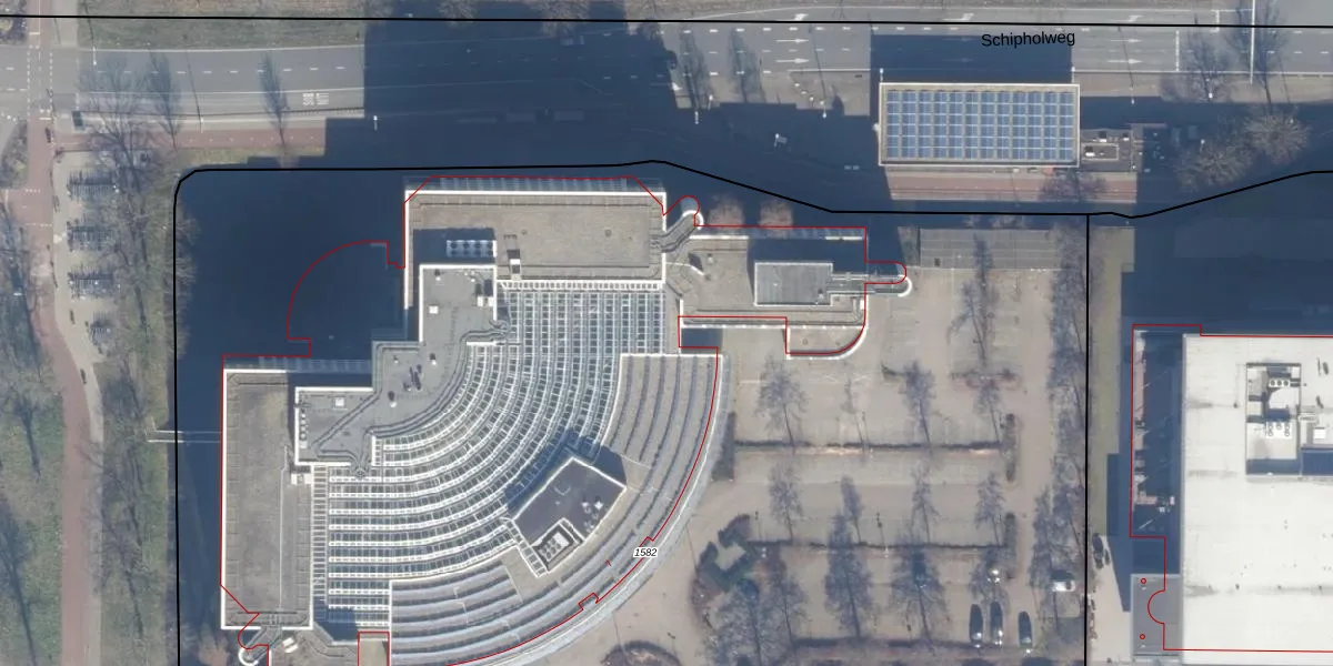 Het perceel waarop Schipholweg 2-V-01 staat heeft een oppervlakte van 1,2 ha. Dit is een zeer groot perceel. De perceeloppervlakte wordt geregistreerd door het Kadaster. Gedetailleerde informatie over de maten van dit perceel kunt u vinden in het rapport Kadastrale kaart met maatvoering van Schipholweg 2-V-01.
