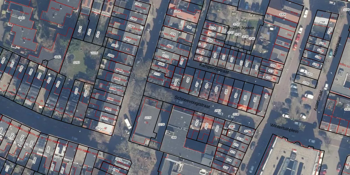 Schneevoogtstraat 1-A-ZW is gelegen op kadastraal perceel HLM01K1642. Deze kadastrale aanduiding is uniek en wordt gebruikt door het Kadaster om eigendomsrechten en andere zakelijke rechten vast te leggen. Het perceel maakt onderdeel uit van de kadastrale gemeente Haarlem.