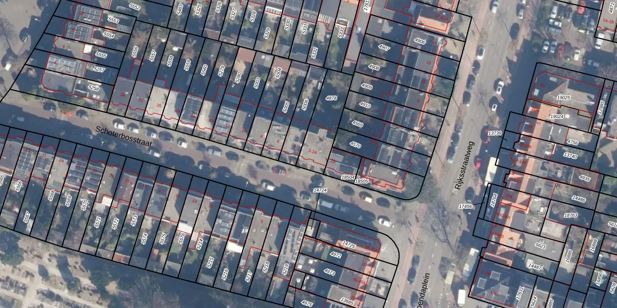 Het perceel waarop Schoterbosstraat 2 staat heeft een oppervlakte van 297 m². Dit is een middelgroot perceel. De perceeloppervlakte wordt geregistreerd door het Kadaster. Gedetailleerde informatie over de maten van dit perceel kunt u vinden in het rapport Kadastrale kaart met maatvoering van Schoterbosstraat 2.
