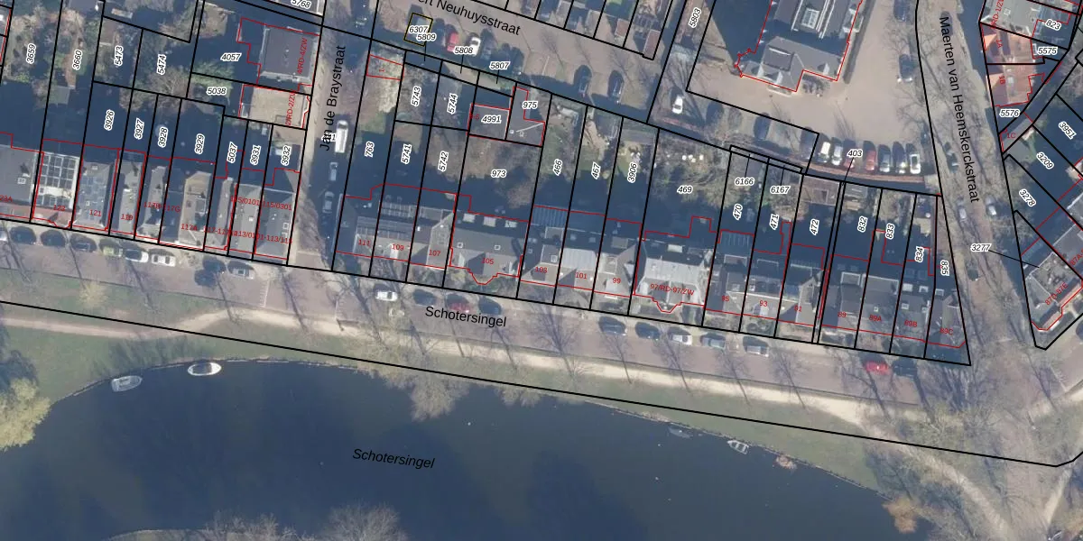 Schotersingel 103 is gelegen op kadastraal perceel HLM01A466. Deze kadastrale aanduiding is uniek en wordt gebruikt door het Kadaster om eigendomsrechten en andere zakelijke rechten vast te leggen. Het perceel maakt onderdeel uit van de kadastrale gemeente Haarlem.
