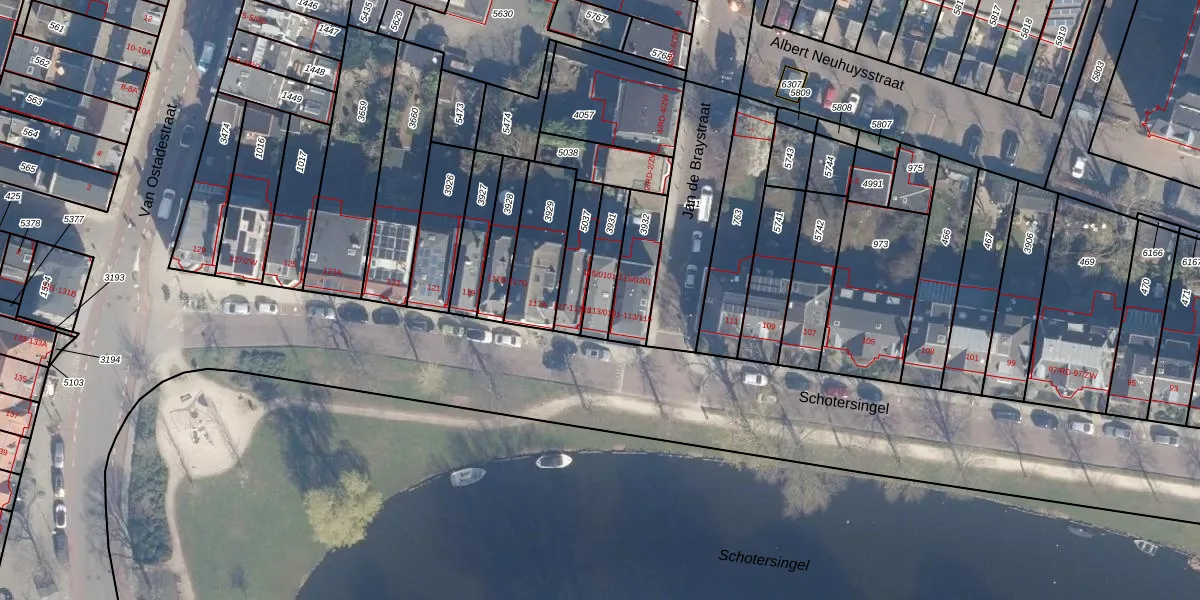 Schotersingel 115-0101 is gelegen op kadastraal perceel HLM01A3931. Deze kadastrale aanduiding is uniek en wordt gebruikt door het Kadaster om eigendomsrechten en andere zakelijke rechten vast te leggen. Het perceel maakt onderdeel uit van de kadastrale gemeente Haarlem.