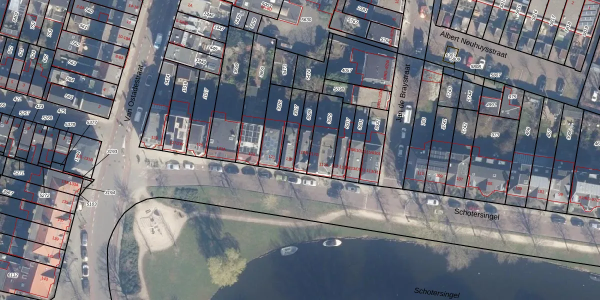 Het adres ligt op het perceel HLM01-A-3928, dat zich in de kadastrale gemeente Haarlem bevindt. Het perceel is kleiner dan gemiddeld in Haarlem. Het perceel is 129 m² groot, terwijl het gemiddelde ligt op 328,37 m². De grootste perceeloppervlakte in de kadastrale gemeente is 13,9 ha. De kleinste oppervlakte bedraagt 0 m². Er zijn 6 adressen aanwezig op het perceel. De huidige grenzen van het perceel zijn digitaal in de Basisregistratie Kadaster (BRK) geregistreerd op 17-08-2001.