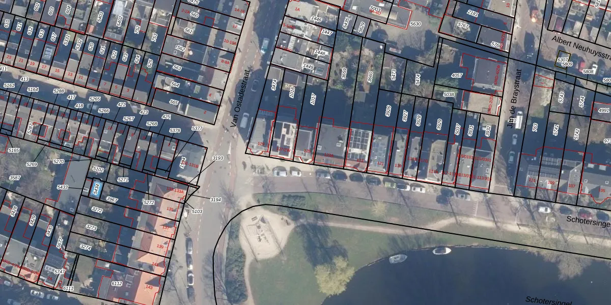 Het perceel waarop Schotersingel 125 staat heeft een oppervlakte van 198 m². Dit is een middelgroot perceel. De perceeloppervlakte wordt geregistreerd door het Kadaster. Gedetailleerde informatie over de maten van dit perceel kunt u vinden in het rapport Kadastrale kaart met maatvoering van Schotersingel 125.