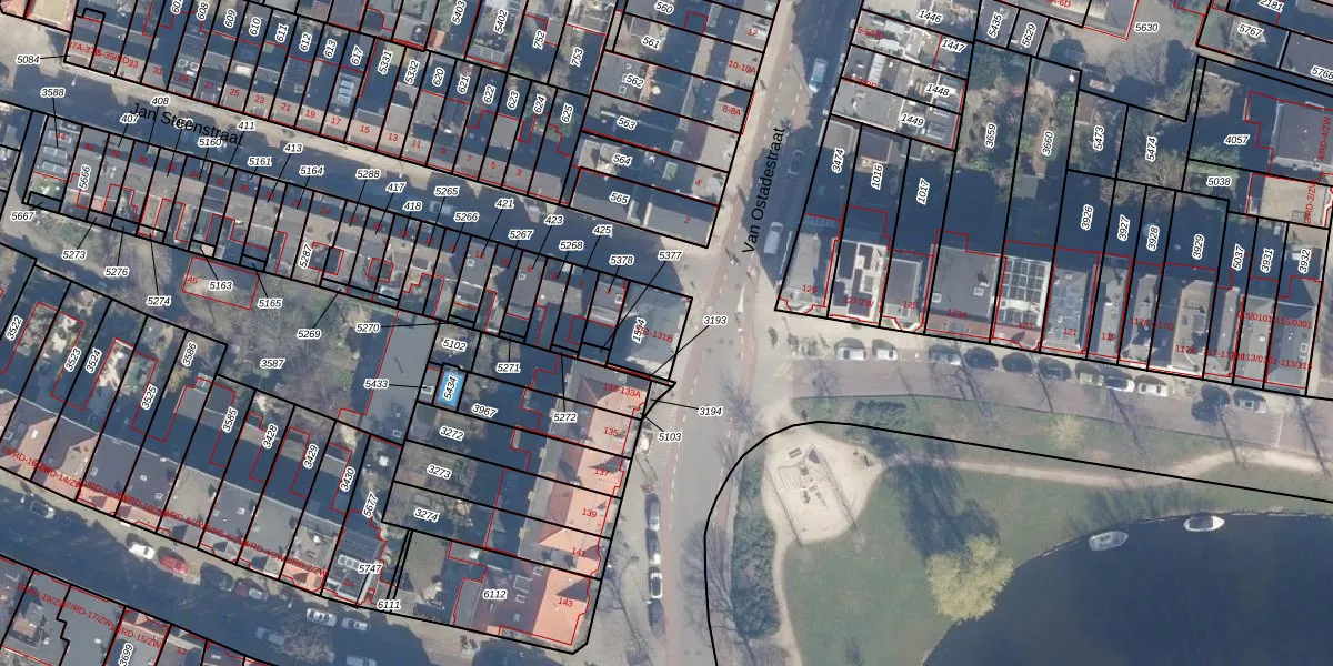 Het adres is gelegen op perceel 1594 in de sectie A en de kadastrale gemeente Haarlem. De kadastrale aanduiding is aldus HLM01-A-1594. Het perceel is 127 m² groot. Dat is kleiner dan de gemiddelde perceeloppervlakte in Haarlem, dat op 328,37 m² ligt. De grootste perceeloppervlakte in de kadastrale gemeente is 13,9 ha. De kleinste oppervlakte bedraagt 0 m². Op het perceel liggen in totaal 3 adressen. De laatste wijziging in het de Basisregistratie Kadaster (BRK) was op 17-08-2001.