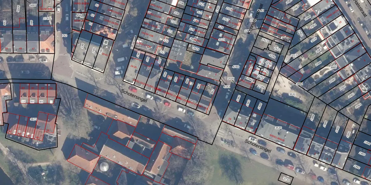 Schotersingel 25-RD is gelegen op kadastraal perceel HLM01G860. Deze kadastrale aanduiding is uniek en wordt gebruikt door het Kadaster om eigendomsrechten en andere zakelijke rechten vast te leggen. Het perceel maakt onderdeel uit van de kadastrale gemeente Haarlem.
