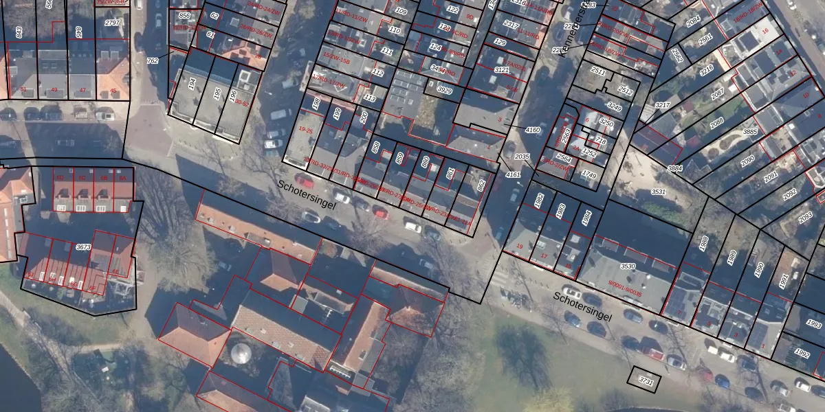 Schotersingel 25-ZW is gelegen op kadastraal perceel HLM01G860. Deze kadastrale aanduiding is uniek en wordt gebruikt door het Kadaster om eigendomsrechten en andere zakelijke rechten vast te leggen. Het perceel maakt onderdeel uit van de kadastrale gemeente Haarlem.