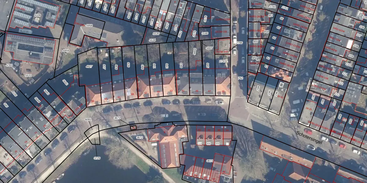 Het perceel waarop Schotersingel 51 staat heeft een oppervlakte van 202 m². Dit is een middelgroot perceel. De perceeloppervlakte wordt geregistreerd door het Kadaster. Gedetailleerde informatie over de maten van dit perceel kunt u vinden in het rapport Kadastrale kaart met maatvoering van Schotersingel 51.