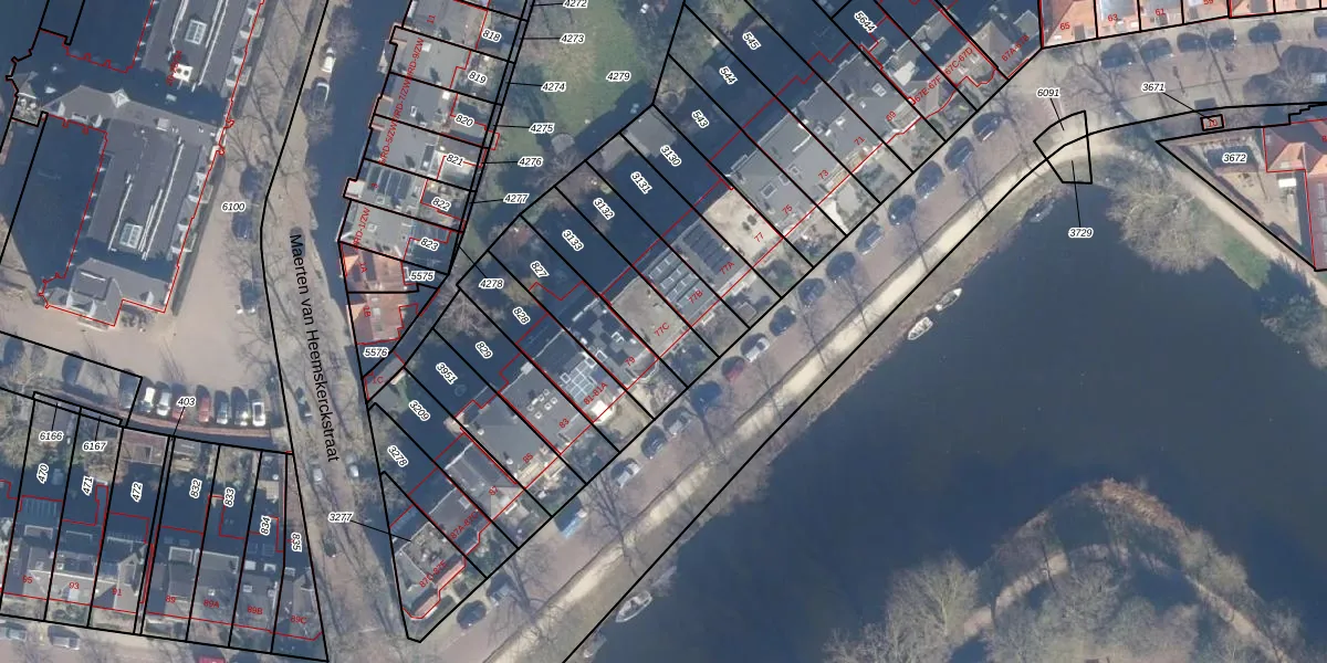 Het adres is gelegen op perceel 3133 in de sectie A en de kadastrale gemeente Haarlem. De kadastrale aanduiding is aldus HLM01-A-3133. Het perceel is 236 m² groot. Dat is kleiner dan de gemiddelde perceeloppervlakte in Haarlem, dat op 328,37 m² ligt. De grootste perceeloppervlakte in de kadastrale gemeente is 13,9 ha. De kleinste oppervlakte bedraagt 0 m². Dit is het enige adres dat aanwezig is op het perceel. De laatste wijziging in het de Basisregistratie Kadaster (BRK) was op 10-05-2005.