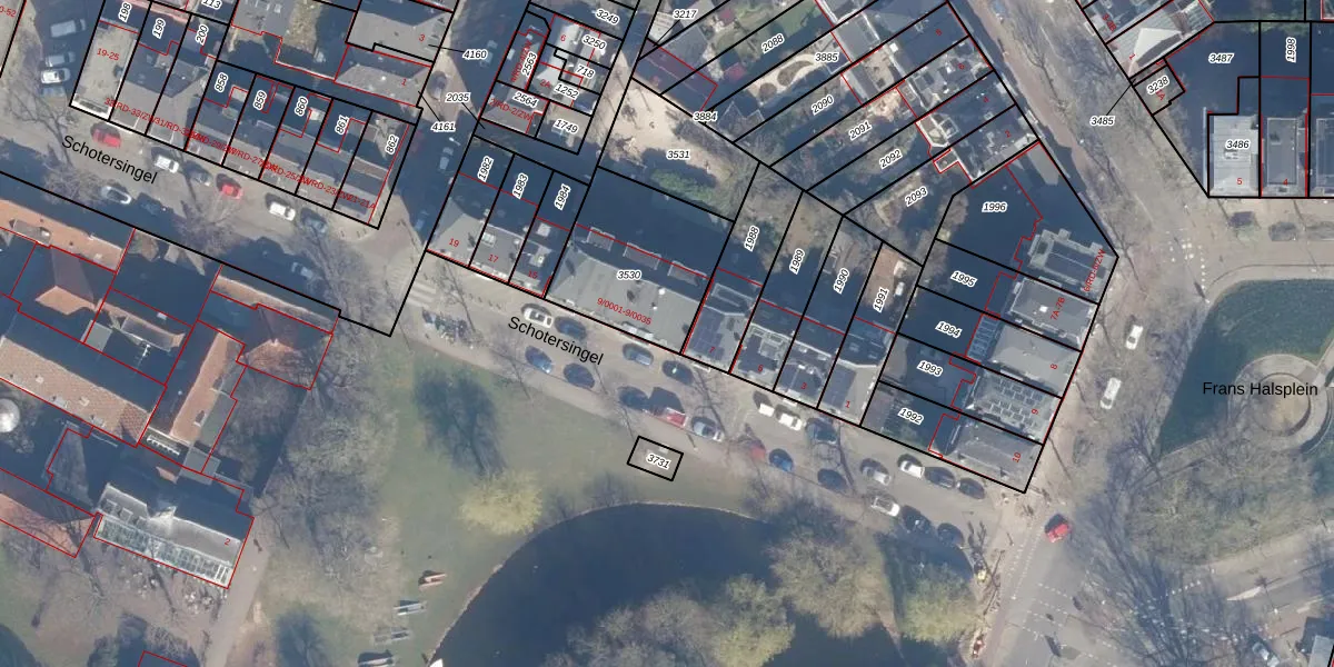 Schotersingel 9-0034 is gelegen op kadastraal perceel HLM01B3530. Deze kadastrale aanduiding is uniek en wordt gebruikt door het Kadaster om eigendomsrechten en andere zakelijke rechten vast te leggen. Het perceel maakt onderdeel uit van de kadastrale gemeente Haarlem.
