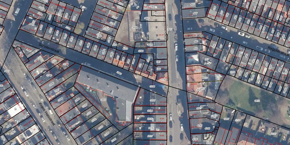 Schoterstraat 33 is gelegen op kadastraal perceel HLM01G3333. Deze kadastrale aanduiding is uniek en wordt gebruikt door het Kadaster om eigendomsrechten en andere zakelijke rechten vast te leggen. Het perceel maakt onderdeel uit van de kadastrale gemeente Haarlem.