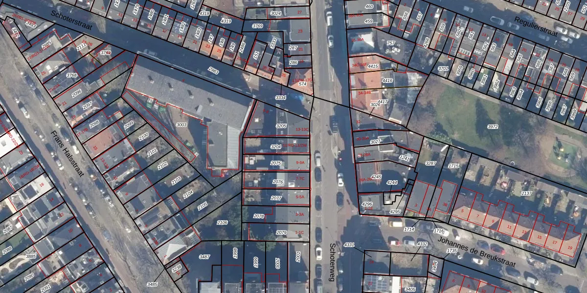 Schoterweg 11-ZW is gelegen op kadastraal perceel HLM01B3204. Deze kadastrale aanduiding is uniek en wordt gebruikt door het Kadaster om eigendomsrechten en andere zakelijke rechten vast te leggen. Het perceel maakt onderdeel uit van de kadastrale gemeente Haarlem.