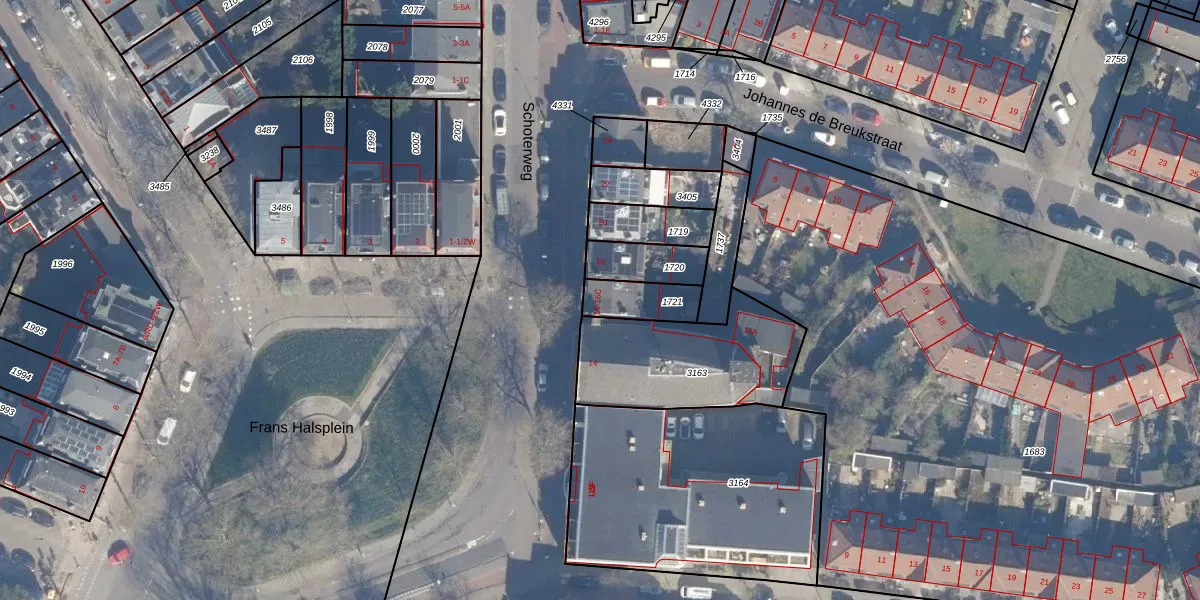 Schoterweg 16-A is gelegen op kadastraal perceel HLM01G1721. Deze kadastrale aanduiding is uniek en wordt gebruikt door het Kadaster om eigendomsrechten en andere zakelijke rechten vast te leggen. Het perceel maakt onderdeel uit van de kadastrale gemeente Haarlem.