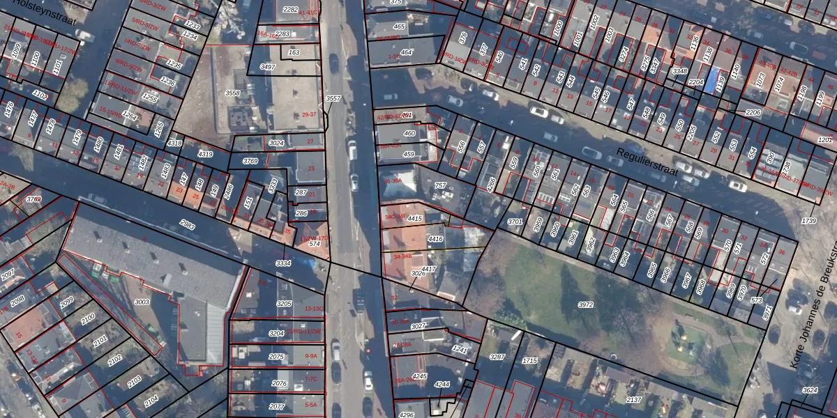 Het perceel waarop het adres ligt is HLM01-G-4415. De afkorting 'HLM01' staat voor kadastrale gemeente Haarlem. Het perceel is 80 m² groot. Dat is kleiner dan de gemiddelde perceeloppervlakte in Haarlem, dat op 328,33 m² ligt. Het kleinste perceel in de kadastrale gemeente is 0 m² groot. De grootste perceeloppervlakte is 13,9 ha. Op het perceel liggen in totaal 4 adressen. In de Basisregistratie Kadaster (BRK) werden de grenzen van het perceel geregistreerd op 07-05-2025.