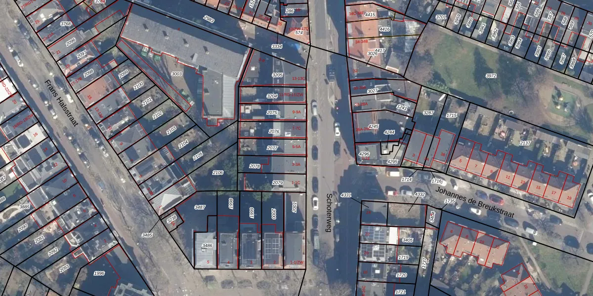 Schoterweg 5 is gelegen op kadastraal perceel HLM01B2077. Deze kadastrale aanduiding is uniek en wordt gebruikt door het Kadaster om eigendomsrechten en andere zakelijke rechten vast te leggen. Het perceel maakt onderdeel uit van de kadastrale gemeente Haarlem.