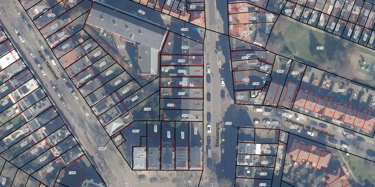 Schoterweg 5-A is gelegen op kadastraal perceel HLM01B2077. Deze kadastrale aanduiding is uniek en wordt gebruikt door het Kadaster om eigendomsrechten en andere zakelijke rechten vast te leggen. Het perceel maakt onderdeel uit van de kadastrale gemeente Haarlem.