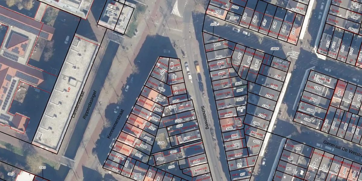 Schoterweg 65-ZW is gelegen op kadastraal perceel HLM01G2414. Deze kadastrale aanduiding is uniek en wordt gebruikt door het Kadaster om eigendomsrechten en andere zakelijke rechten vast te leggen. Het perceel maakt onderdeel uit van de kadastrale gemeente Haarlem.