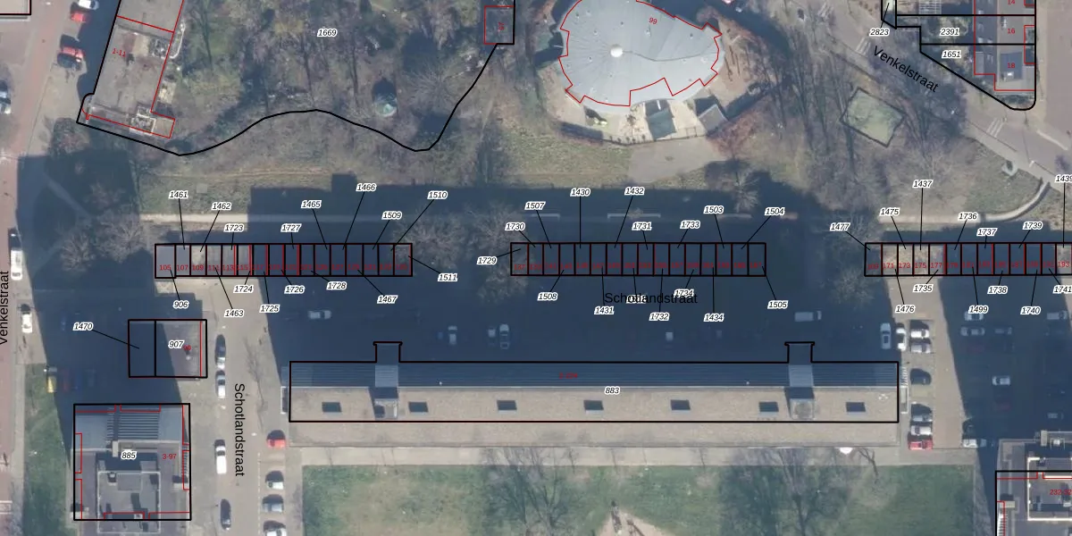 Het perceel waarop Schotlandstraat 139 staat heeft een oppervlakte van 18 m². Dit is een klein perceel. De perceeloppervlakte wordt geregistreerd door het Kadaster. Gedetailleerde informatie over de maten van dit perceel kunt u vinden in het rapport Kadastrale kaart met maatvoering van Schotlandstraat 139.