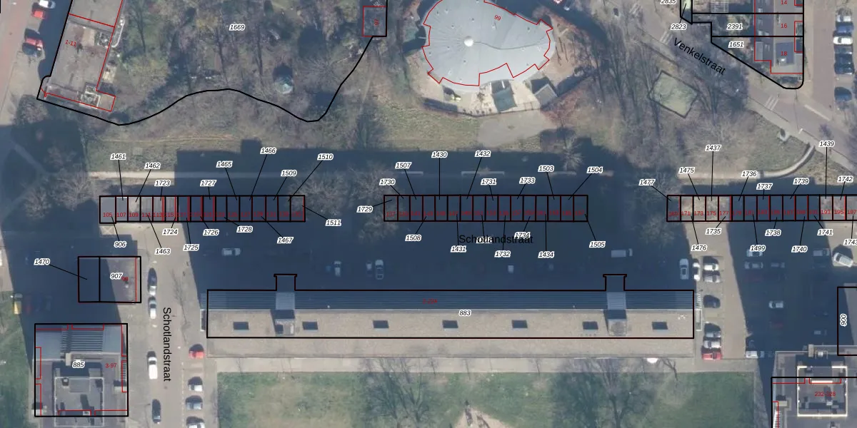 Het perceel waarop Schotlandstraat 143 staat heeft een oppervlakte van 15 m². Dit is een klein perceel. De perceeloppervlakte wordt geregistreerd door het Kadaster. Gedetailleerde informatie over de maten van dit perceel kunt u vinden in het rapport Kadastrale kaart met maatvoering van Schotlandstraat 143.