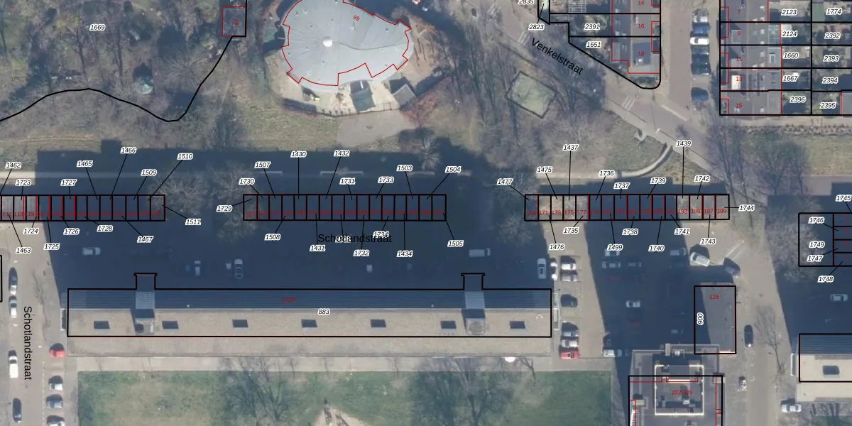 Gebruik de zoekbalk of klik op een perceel voor informatie over de adressen binnen dit perceel.