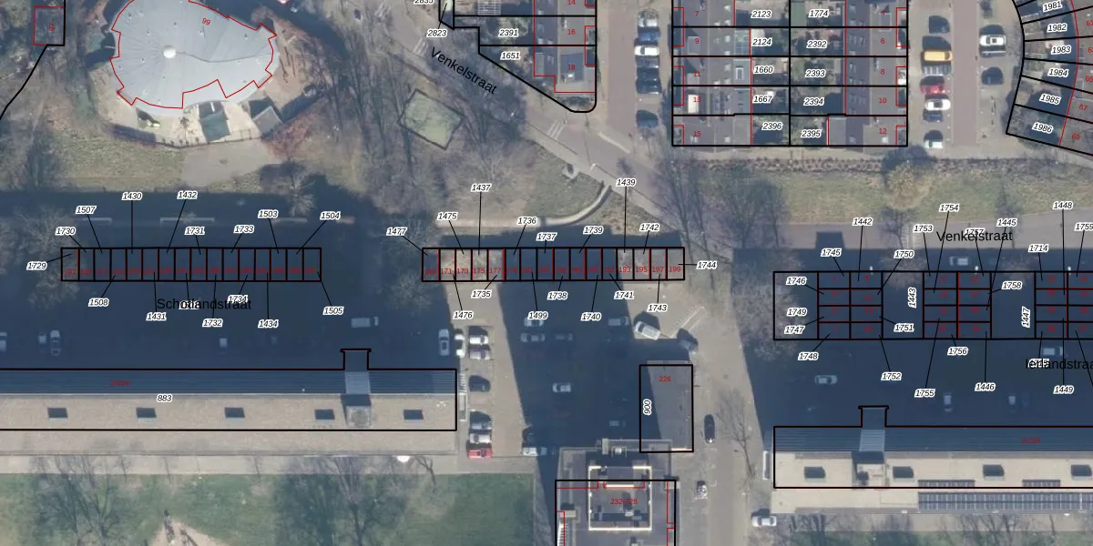 Gebruik de zoekbalk of klik op een perceel voor informatie over de adressen binnen dit perceel.