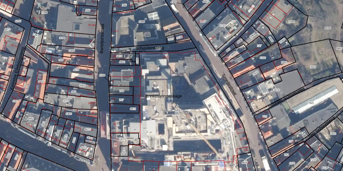 Het perceel waarop Schoutensteeg 111 staat heeft een oppervlakte van 4501 m². Dit is een zeer groot perceel. De perceeloppervlakte wordt geregistreerd door het Kadaster. Gedetailleerde informatie over de maten van dit perceel kunt u vinden in het rapport Kadastrale kaart met maatvoering van Schoutensteeg 111.