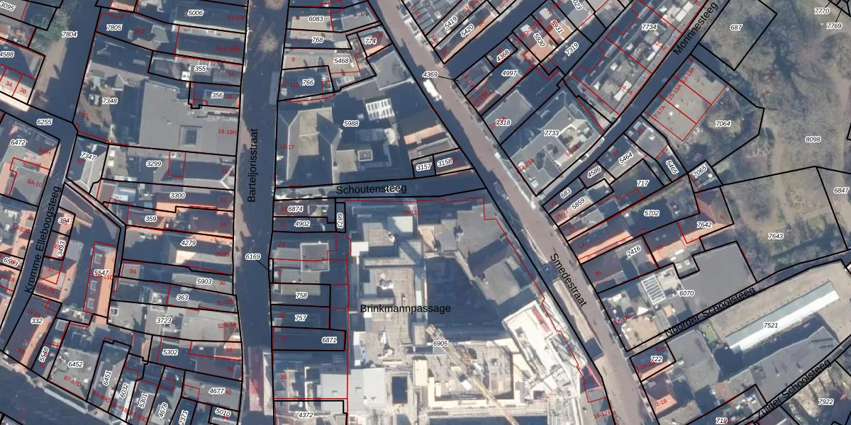 Het perceel waarop Schoutensteeg 29 staat heeft een oppervlakte van 4501 m². Dit is een zeer groot perceel. De perceeloppervlakte wordt geregistreerd door het Kadaster. Gedetailleerde informatie over de maten van dit perceel kunt u vinden in het rapport Kadastrale kaart met maatvoering van Schoutensteeg 29.