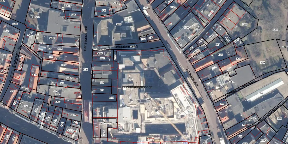 Het perceel waarop Schoutensteeg 89 staat heeft een oppervlakte van 4501 m². Dit is een zeer groot perceel. De perceeloppervlakte wordt geregistreerd door het Kadaster. Gedetailleerde informatie over de maten van dit perceel kunt u vinden in het rapport Kadastrale kaart met maatvoering van Schoutensteeg 89.