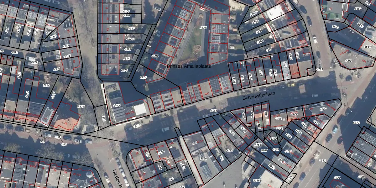 Het perceel waarop Schouwtjeslaan 19-D staat heeft een oppervlakte van 2539 m². Dit is een zeer groot perceel. De perceeloppervlakte wordt geregistreerd door het Kadaster. Gedetailleerde informatie over de maten van dit perceel kunt u vinden in het rapport Kadastrale kaart met maatvoering van Schouwtjeslaan 19-D.