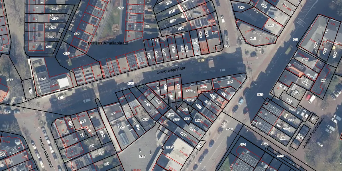 Het perceel waarop Schouwtjeslaan 2-B staat heeft een oppervlakte van 60 m². Dit is een klein perceel. De perceeloppervlakte wordt geregistreerd door het Kadaster. Gedetailleerde informatie over de maten van dit perceel kunt u vinden in het rapport Kadastrale kaart met maatvoering van Schouwtjeslaan 2-B.