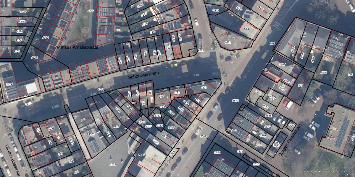 Het perceel waarop Schouwtjeslaan 2-E staat heeft een oppervlakte van 65 m². Dit is een klein perceel. De perceeloppervlakte wordt geregistreerd door het Kadaster. Gedetailleerde informatie over de maten van dit perceel kunt u vinden in het rapport Kadastrale kaart met maatvoering van Schouwtjeslaan 2-E.