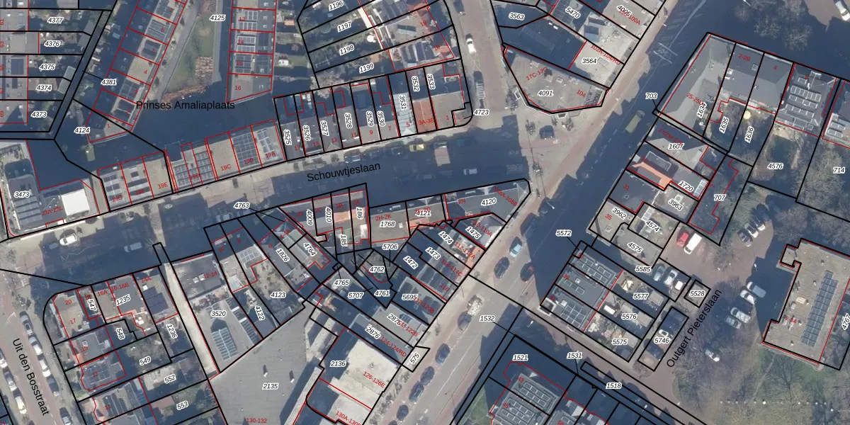 Het perceel waarop Schouwtjeslaan 2-F staat heeft een oppervlakte van 65 m². Dit is een klein perceel. De perceeloppervlakte wordt geregistreerd door het Kadaster. Gedetailleerde informatie over de maten van dit perceel kunt u vinden in het rapport Kadastrale kaart met maatvoering van Schouwtjeslaan 2-F.