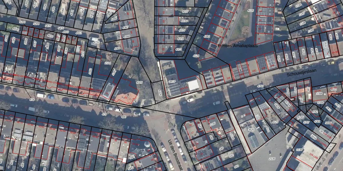 Het perceel waarop Schouwtjeslaan 23-E staat heeft een oppervlakte van 454 m². Dit is een groot perceel. De perceeloppervlakte wordt geregistreerd door het Kadaster. Gedetailleerde informatie over de maten van dit perceel kunt u vinden in het rapport Kadastrale kaart met maatvoering van Schouwtjeslaan 23-E.