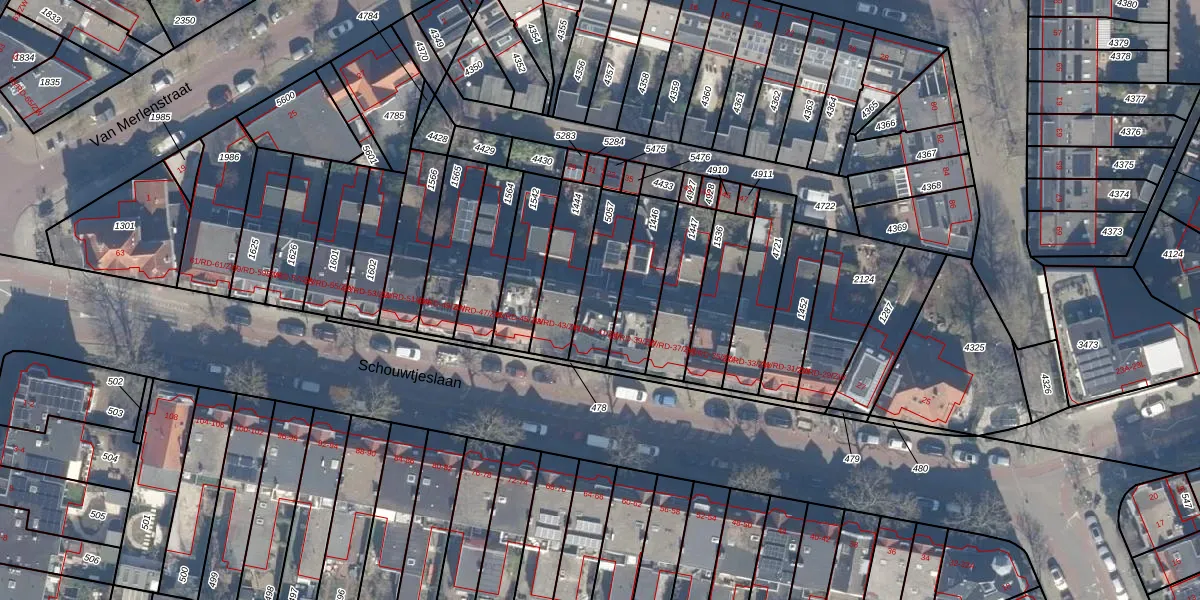 Schouwtjeslaan 41-RD is gelegen op kadastraal perceel HLM01I5057. Deze kadastrale aanduiding is uniek en wordt gebruikt door het Kadaster om eigendomsrechten en andere zakelijke rechten vast te leggen. Het perceel maakt onderdeel uit van de kadastrale gemeente Haarlem.