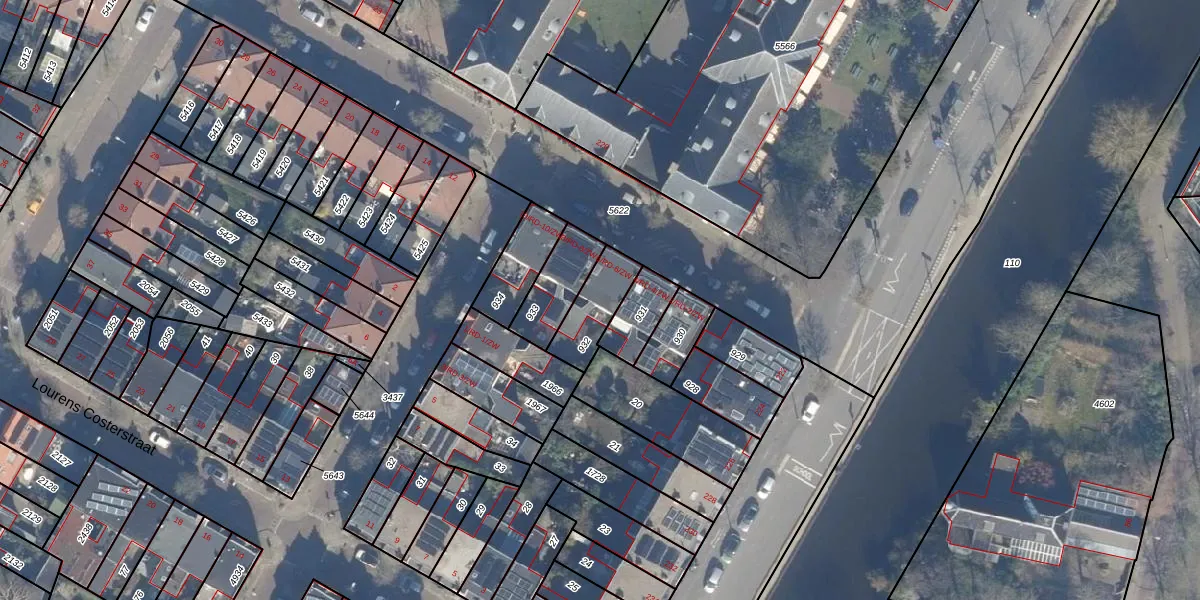 Het adres is gelegen op perceel 932 in de sectie I en de kadastrale gemeente Haarlem. De kadastrale aanduiding is aldus HLM01-I-932. Het perceel is kleiner dan gemiddeld in Haarlem. Het perceel is 145 m² groot, terwijl het gemiddelde ligt op 328,37 m². Het kleinste perceel in de kadastrale gemeente is 0 m² groot. De grootste perceeloppervlakte is 13,9 ha. Op het perceel zijn 2 adressen aanwezig. In de Basisregistratie Kadaster (BRK) werden de grenzen van het perceel geregistreerd op 28-11-1997.