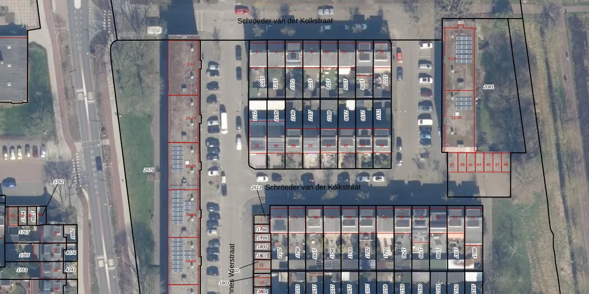 Gebruik de zoekbalk of klik op een perceel voor informatie over de adressen binnen dit perceel.