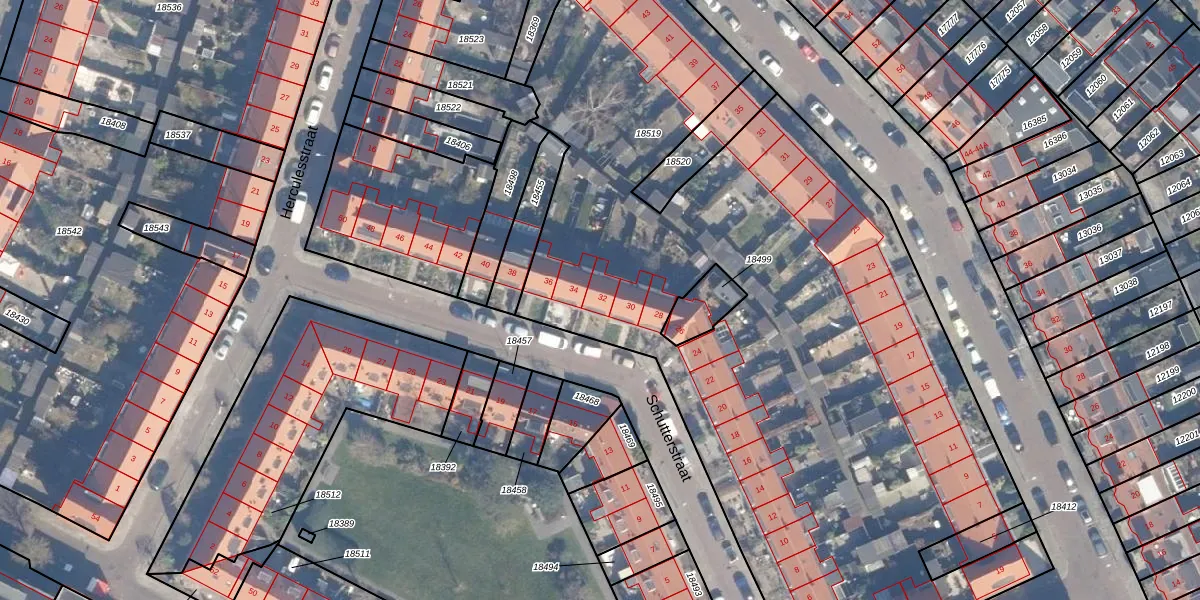 Schutterstraat 32 is gelegen op kadastraal perceel STN01B18519. Deze kadastrale aanduiding is uniek en wordt gebruikt door het Kadaster om eigendomsrechten en andere zakelijke rechten vast te leggen. Het perceel maakt onderdeel uit van de kadastrale gemeente Schoten.