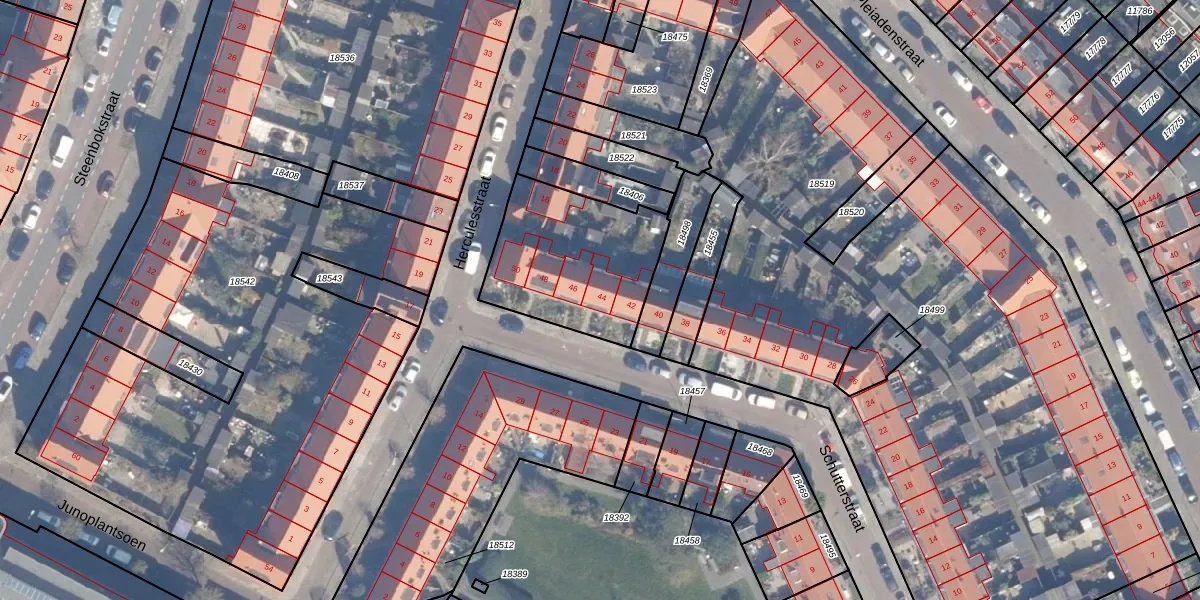 Schutterstraat 44 is gelegen op kadastraal perceel STN01B18522. Deze kadastrale aanduiding is uniek en wordt gebruikt door het Kadaster om eigendomsrechten en andere zakelijke rechten vast te leggen. Het perceel maakt onderdeel uit van de kadastrale gemeente Schoten.
