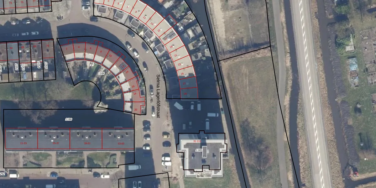 Het perceel waarop Selma Lagerlöfstraat 29 staat heeft een oppervlakte van 4470 m². Dit is een zeer groot perceel. De perceeloppervlakte wordt geregistreerd door het Kadaster. Gedetailleerde informatie over de maten van dit perceel kunt u vinden in het rapport Kadastrale kaart met maatvoering van Selma Lagerlöfstraat 29.