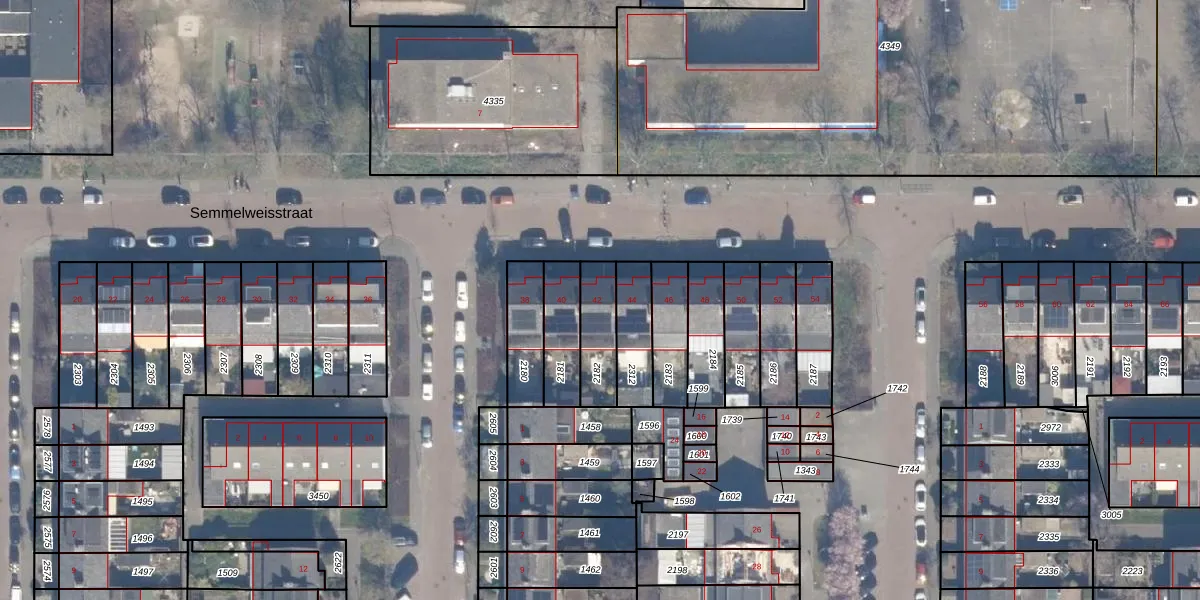 Het perceel waarop Semmelweisstraat 42 staat heeft een oppervlakte van 145 m². Dit is een middelgroot perceel. De perceeloppervlakte wordt geregistreerd door het Kadaster. Gedetailleerde informatie over de maten van dit perceel kunt u vinden in het rapport Kadastrale kaart met maatvoering van Semmelweisstraat 42.