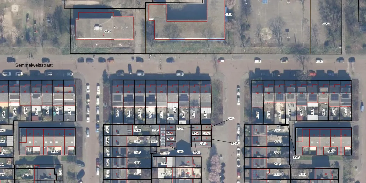 Het perceel waarop Semmelweisstraat 50 staat heeft een oppervlakte van 145 m². Dit is een middelgroot perceel. De perceeloppervlakte wordt geregistreerd door het Kadaster. Gedetailleerde informatie over de maten van dit perceel kunt u vinden in het rapport Kadastrale kaart met maatvoering van Semmelweisstraat 50.
