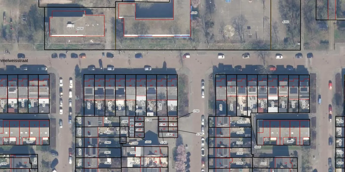 Semmelweisstraat 54 is gelegen op kadastraal perceel HLM02P2187. Deze kadastrale aanduiding is uniek en wordt gebruikt door het Kadaster om eigendomsrechten en andere zakelijke rechten vast te leggen. Het perceel maakt onderdeel uit van de kadastrale gemeente Haarlem.