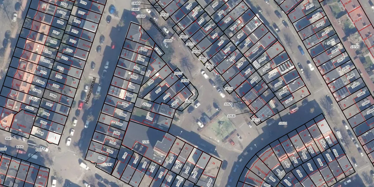 Gebruik de zoekbalk of klik op een perceel voor informatie over de adressen binnen dit perceel.