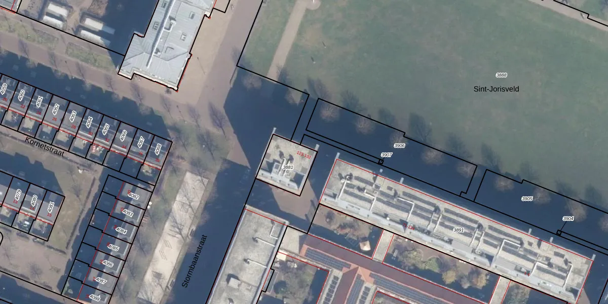 Sint-Jorisveld 123 is gelegen op kadastraal perceel HLM01G3881. Deze kadastrale aanduiding is uniek en wordt gebruikt door het Kadaster om eigendomsrechten en andere zakelijke rechten vast te leggen. Het perceel maakt onderdeel uit van de kadastrale gemeente Haarlem.