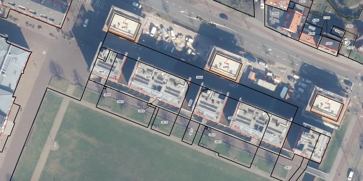 Het adres ligt op het perceel HLM01-G-3897, dat zich in de kadastrale gemeente Haarlem bevindt. De oppervlakte van het perceel is 846 m². Dat is groter dan gemiddeld in Haarlem, waar de gemiddelde perceeloppervlakte op 328,25 m² ligt. Het grootste perceel in de kadastrale gemeente is 13,9 ha. Het kleinste perceel heeft een oppervlakte van 0 m². Er zijn 21 adressen aanwezig op het perceel. De huidige grenzen van het perceel zijn digitaal in de Basisregistratie Kadaster (BRK) geregistreerd op 09-03-2005.