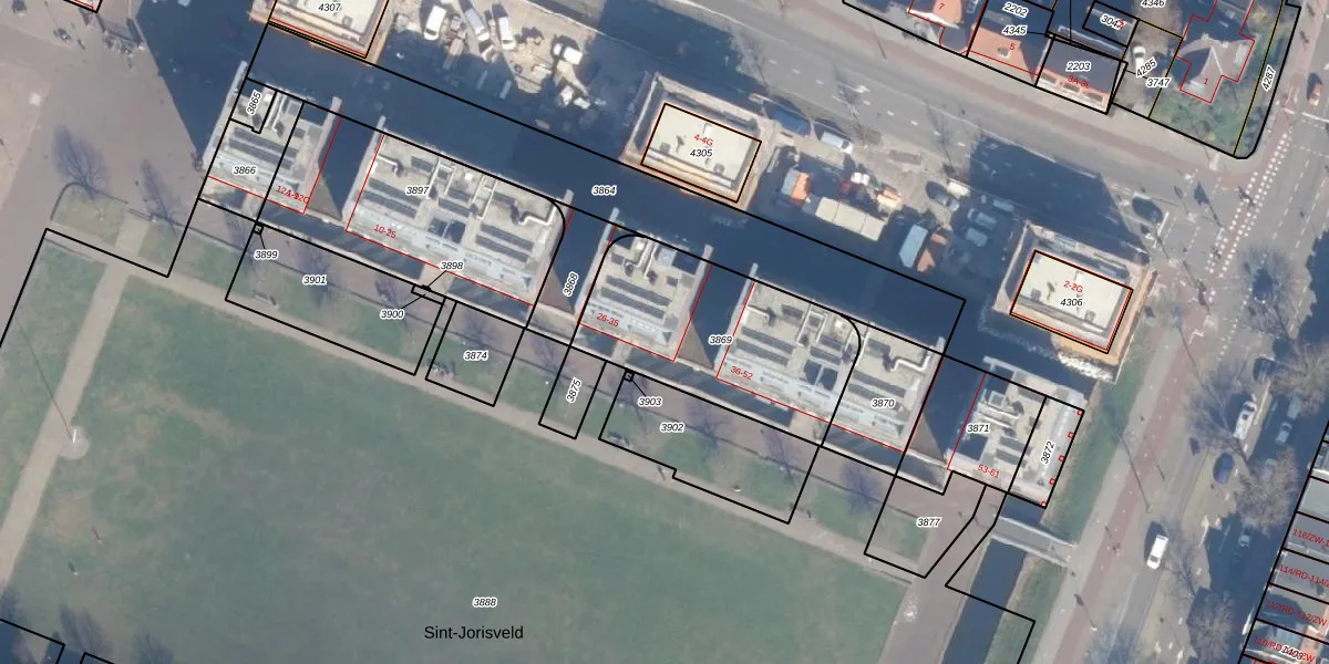 Sint-Jorisveld 29 is gelegen op kadastraal perceel HLM01G3869. Deze kadastrale aanduiding is uniek en wordt gebruikt door het Kadaster om eigendomsrechten en andere zakelijke rechten vast te leggen. Het perceel maakt onderdeel uit van de kadastrale gemeente Haarlem.