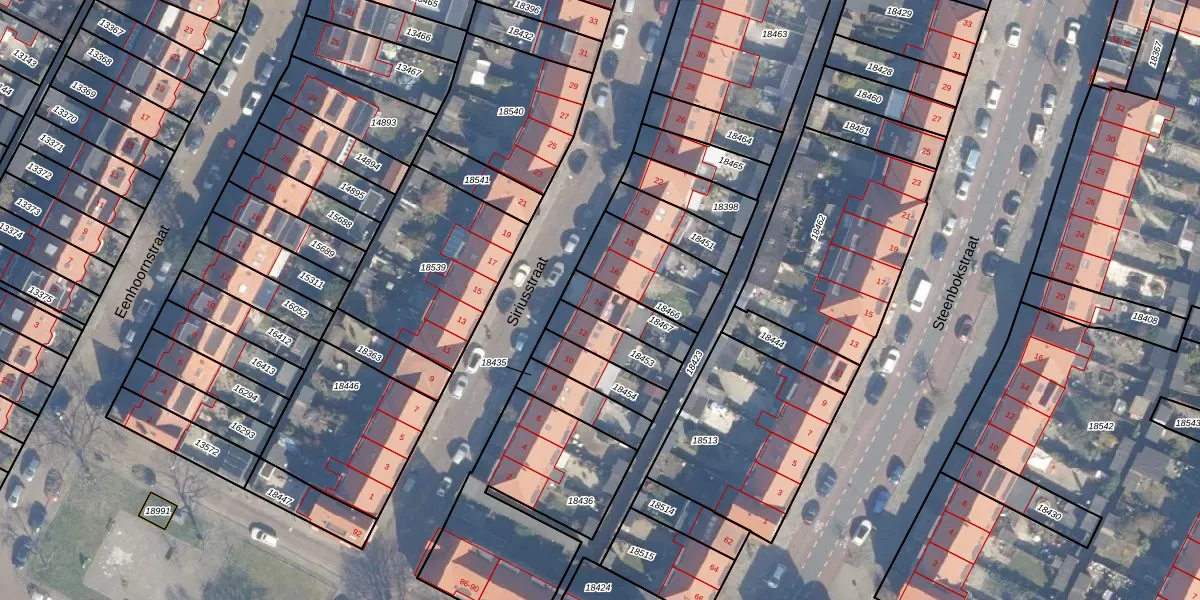 Gebruik de zoekbalk of klik op een perceel voor informatie over de adressen binnen dit perceel.