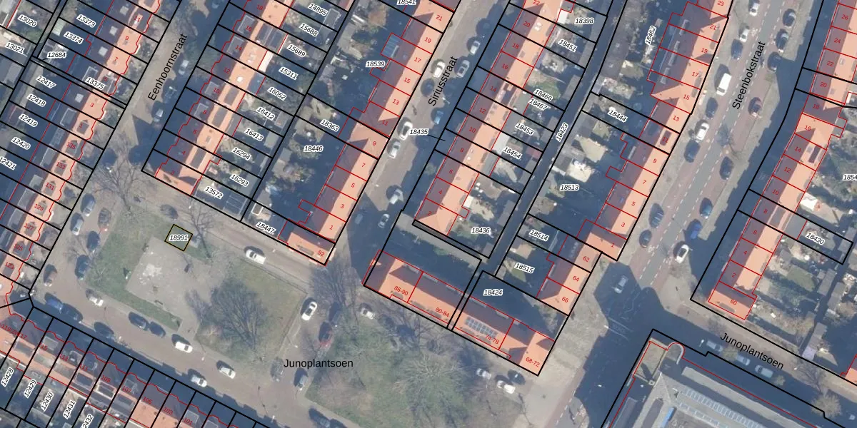 Het perceel waarop Siriusstraat 2 staat heeft een oppervlakte van 783 m². Dit is een groot perceel. De perceeloppervlakte wordt geregistreerd door het Kadaster. Gedetailleerde informatie over de maten van dit perceel kunt u vinden in het rapport Kadastrale kaart met maatvoering van Siriusstraat 2.