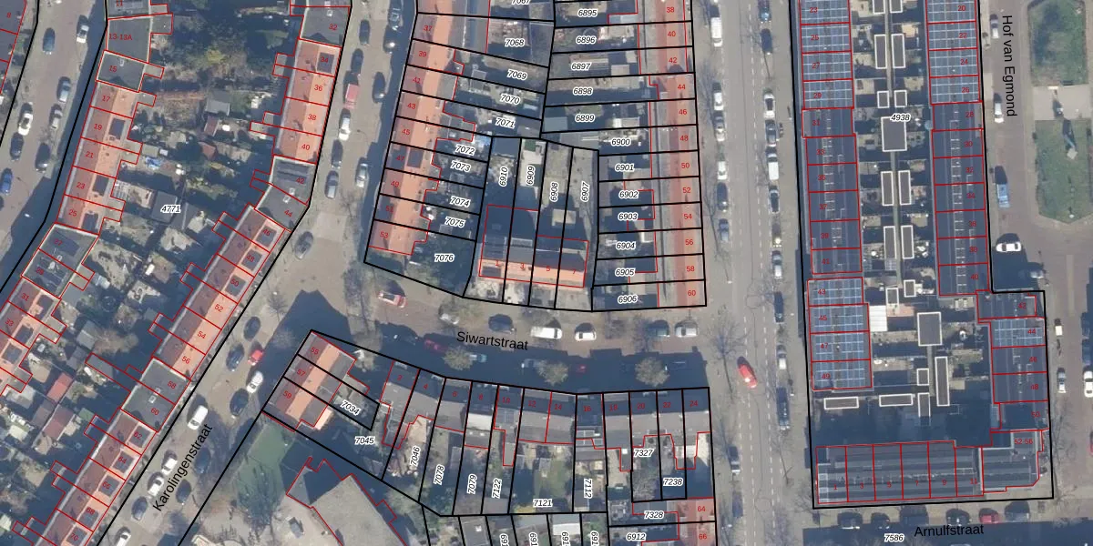 Gebruik de zoekbalk of klik op een perceel voor informatie over de adressen binnen dit perceel.