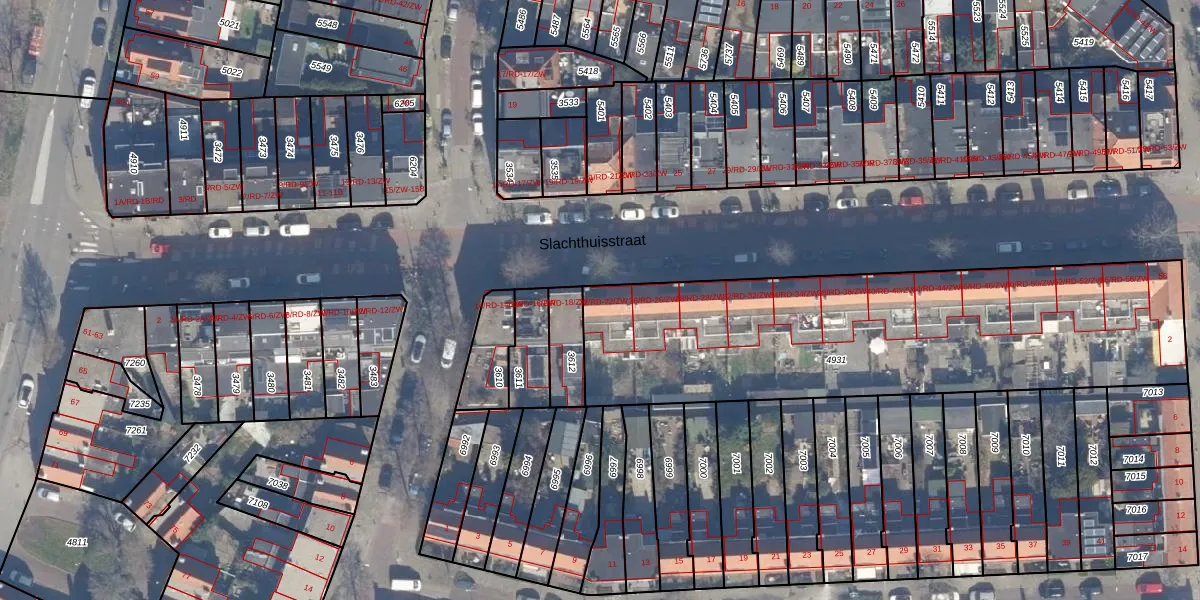 Het perceel waarop Slachthuisstraat 22-ZW staat heeft een oppervlakte van 2090 m². Dit is een zeer groot perceel. De perceeloppervlakte wordt geregistreerd door het Kadaster. Gedetailleerde informatie over de maten van dit perceel kunt u vinden in het rapport Kadastrale kaart met maatvoering van Slachthuisstraat 22-ZW.