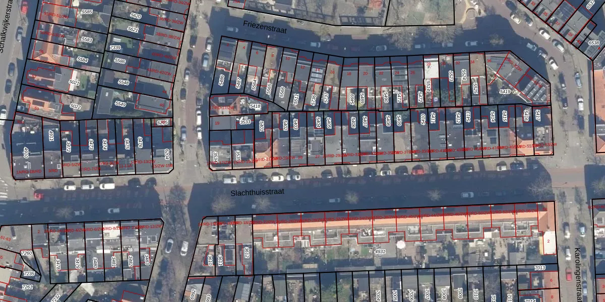 Het perceel waarop Slachthuisstraat 25-A staat heeft een oppervlakte van 106 m². Dit is een middelgroot perceel. De perceeloppervlakte wordt geregistreerd door het Kadaster. Gedetailleerde informatie over de maten van dit perceel kunt u vinden in het rapport Kadastrale kaart met maatvoering van Slachthuisstraat 25-A.